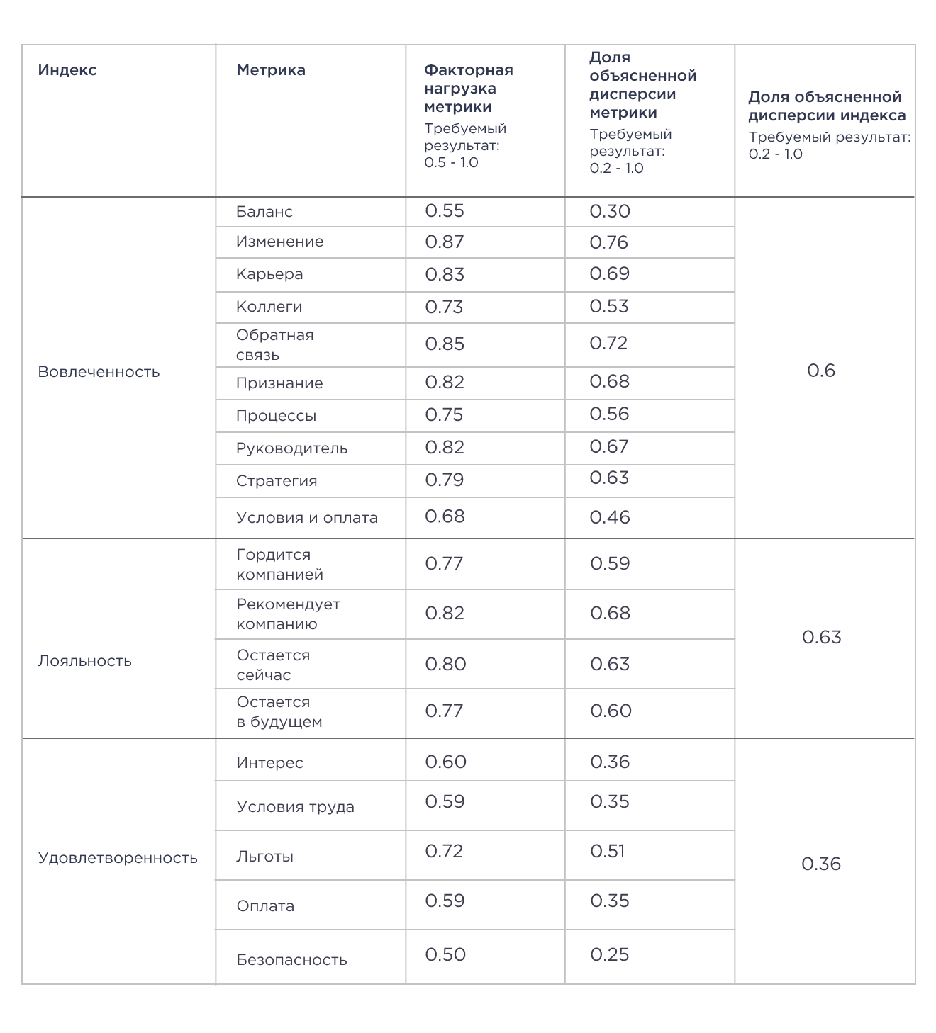 В своих исследованиях мы оцениваем вовлеченность сотрудников по 10 метрикам, а лояльность по 4.
