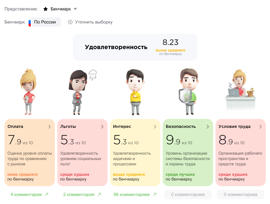 Удовлетворенность персонала определяется по 5 метрикам: